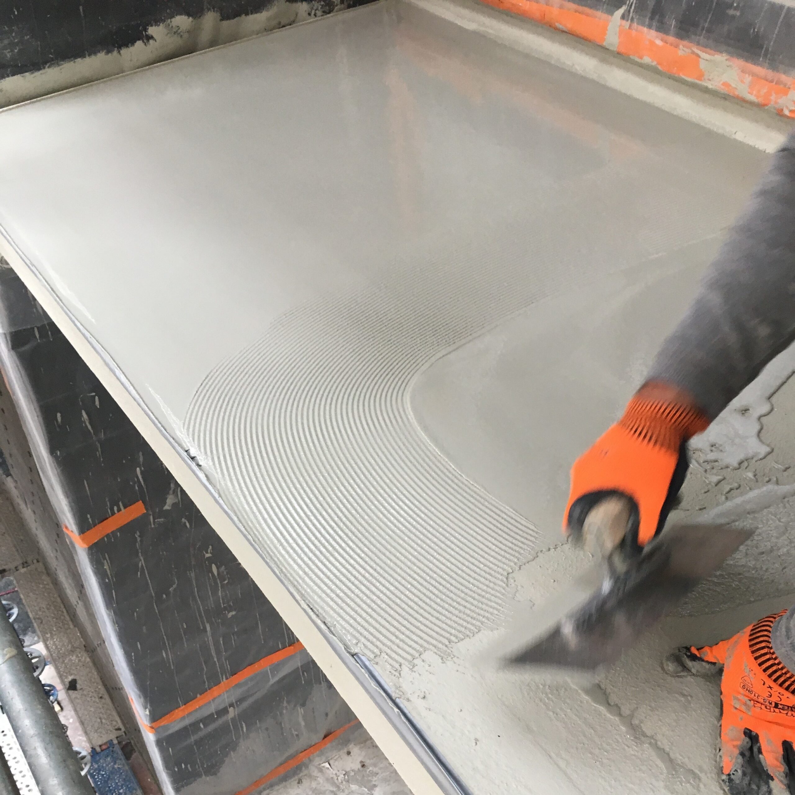 - Plaatsen van PMMA-afdichtingssysteem afgewerkt met een gietvloer ingestrooit met color-chips